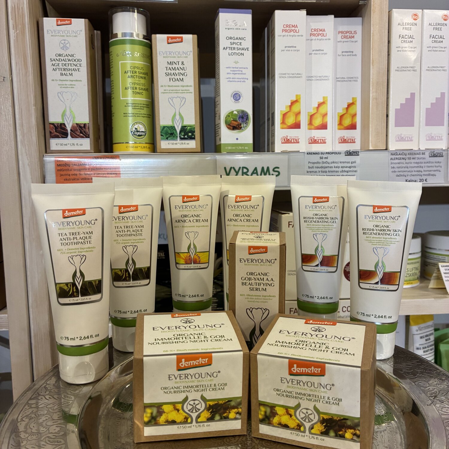 Vilniaus Senamiestyje, šalia Katedros įkūrėme biodinaminio maisto oazę, kurioje stengiamės propaguoti biologinę – dinaminę žemdirbystę, visame pasaulyje žinomą „DEMETER“ vardu. Tuo pačiu ženklu žymimi ir kosmetikos gaminiai, jei naudojami „Demeter“ ingredientai ir dinamizavimo gamybos būdas, taip pat Marijos Thun planetų konsteliacijos kalendorius.